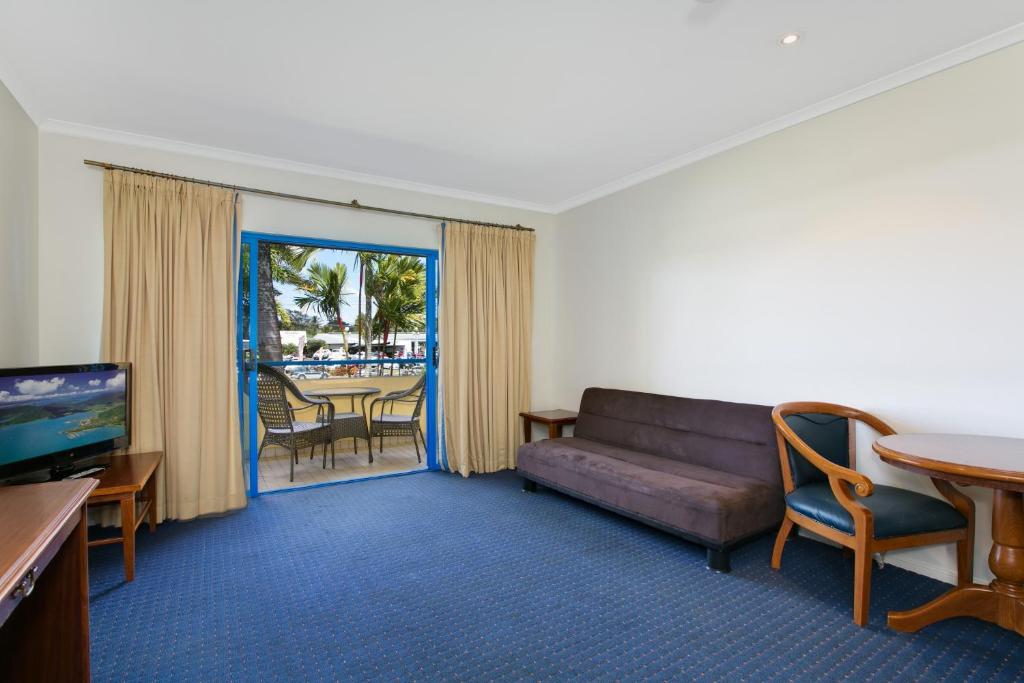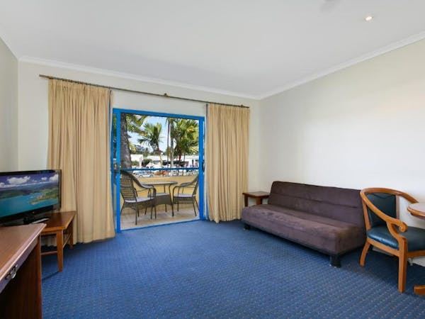 Our Budget One-bedroom Apartment offers a comfortable queen bed in an air-conditioned space, complete with a separate lounge for relaxation and a self-contained kitchenette for convenience. Amenities include a fridge, mini bar, and a large bath, enhancing the comfort of your stay. Entertainment is provided by a flat-screen TV, and guests can enjoy the added luxury of balcony access, perfect for taking in the view or enjoying a breath of fresh air.